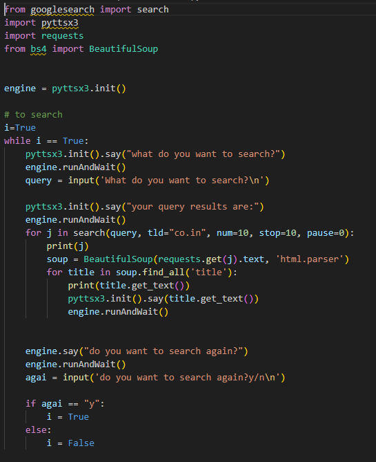 I made this because I wanted to make a search engine that would use text to speech to verbally convey what was on a webpage. I never got around to finishing it. |